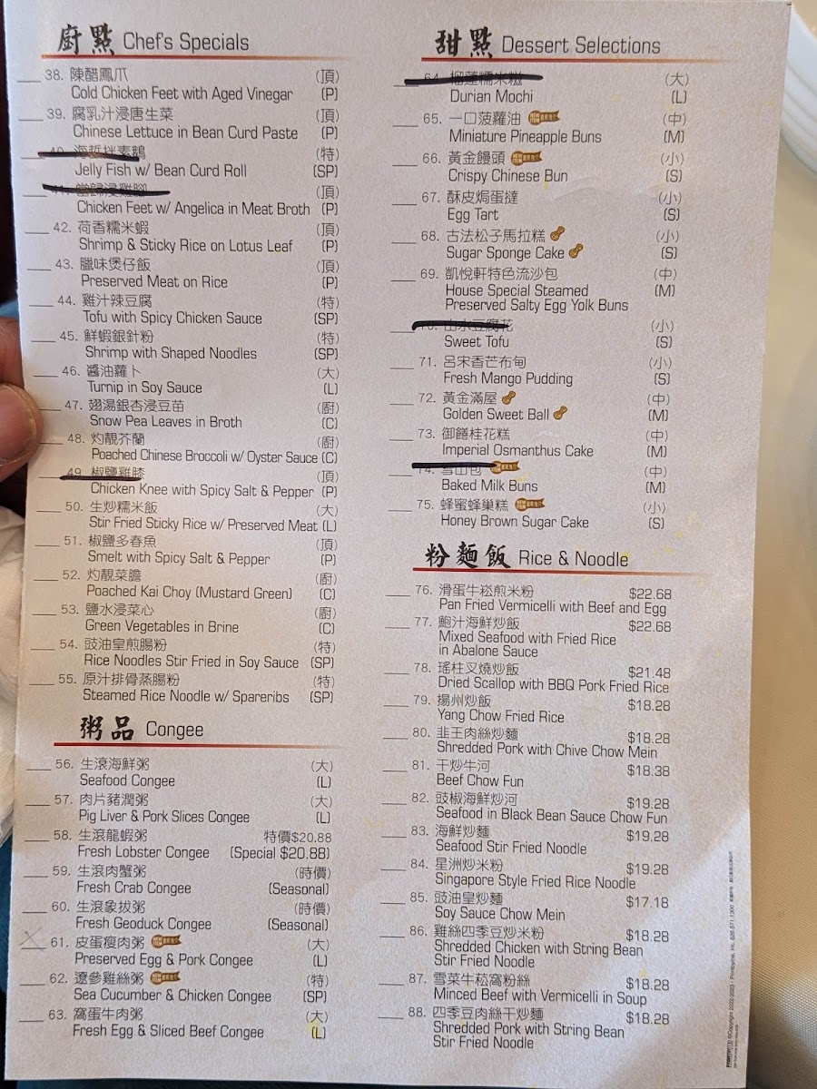 Dim Sum and Baked Items: The dim sum offerings include classic items such as shrimp dumplings (ha gau), miniature pineapple buns, mochi, and house special baked BBQ pork buns. These items are suitable for lighter meals or communal dining, often enjoyed during lunch or brunch hours.