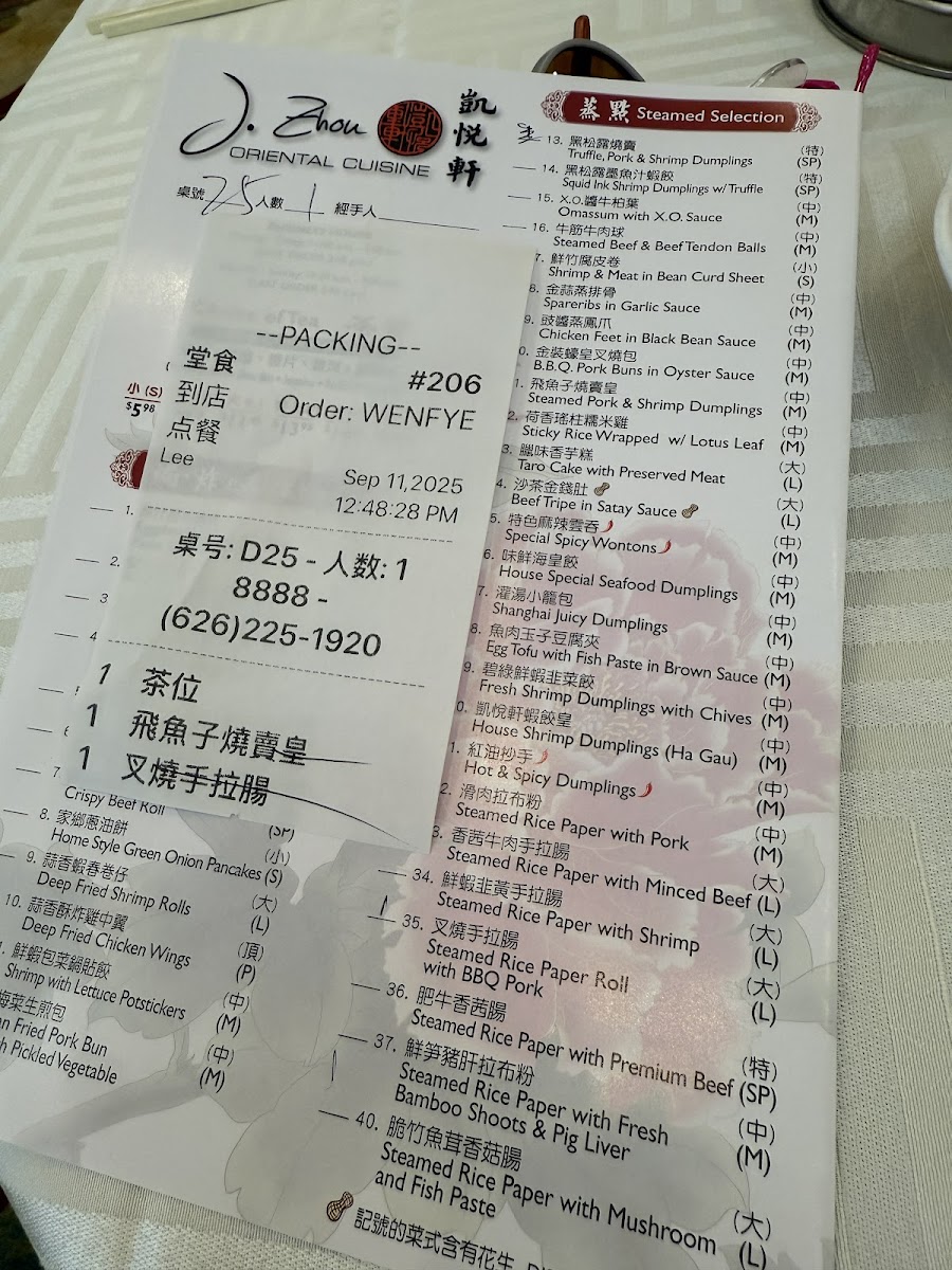 Main Courses and Noodles: Entrées include stir-fried and steamed dishes, such as beef chow fun, stir-fried vegetables, and noodles with shredded pork. Seafood items like lobster and house special seafood dumplings offer additional variety.
